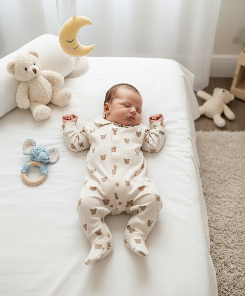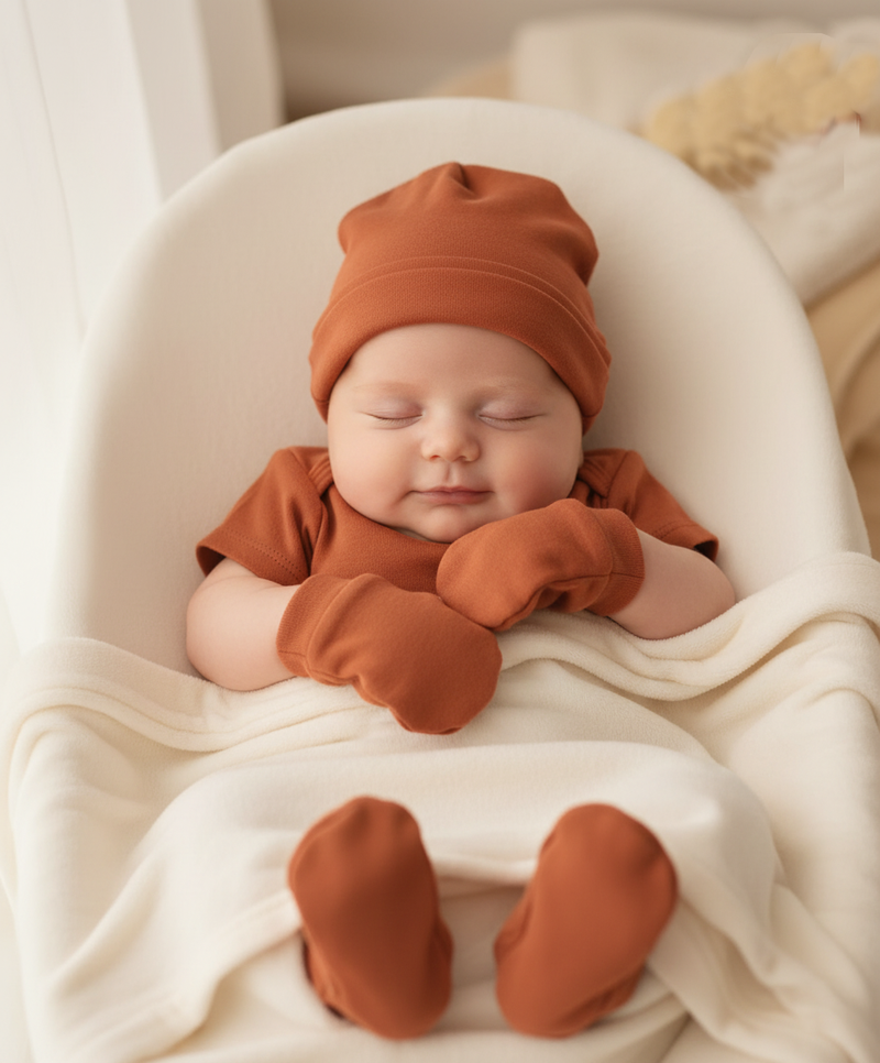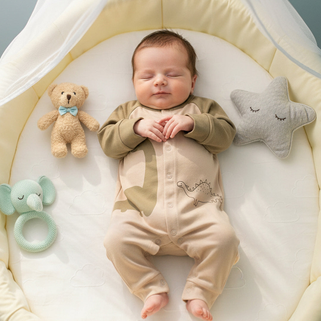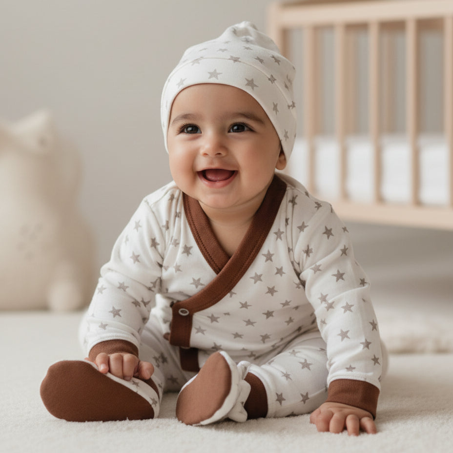 Our babywear is made from 100% soft, breathable, and skin-safe fabrics designed to keep your little one comfortable all day long. Each piece is thoughtfully crafted with flat seams, non-irritating labels, and gentle dyes perfect for delicate baby skin.