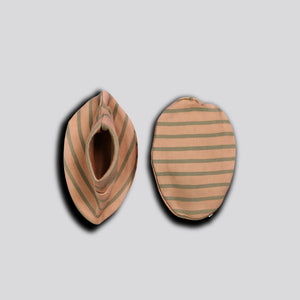 This set has a soft cap, warm mittens, and snug booties. It is for Preemie, New Born, and 0–3M babies. The pieces come in olive stripes. The cap sits soft on the head. The mittens keep small hands warm. The booties stay firm on tiny feet. The cotton feels smooth on the skin. The seams are soft. The fabric has a light stretch, so the baby stays comfy.