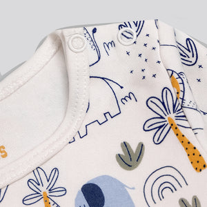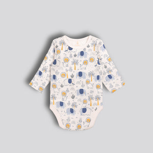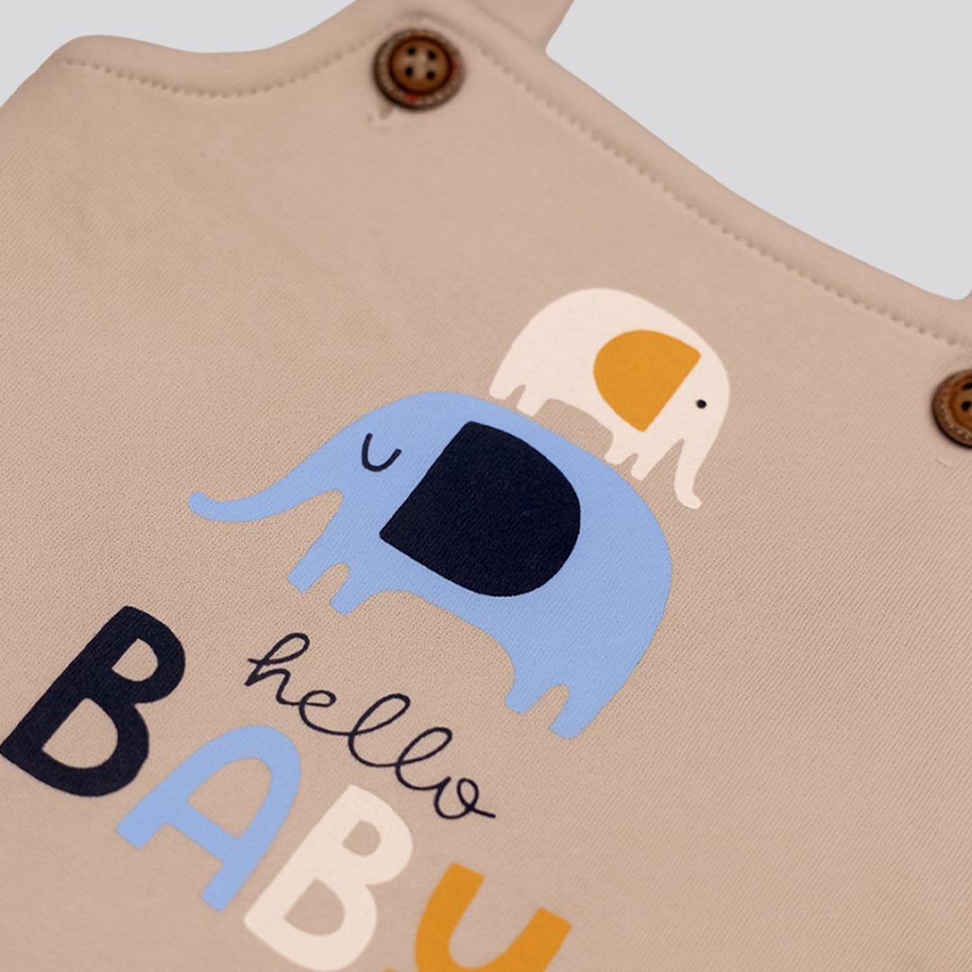 Cute dungaree outfit made for Preemie, Newborn, 0–1 M and to 0–3 M baby. The top includes a soft jungle print pattern, while the dungaree shows a pretty lion on the front side. The cloth feels smooth and gentle on the skin. The straps adjust easily so the fit stays comfy. Snap buttons at the bottom help parents change diapers fast. The set stays light, soft, and easy for daily wear.