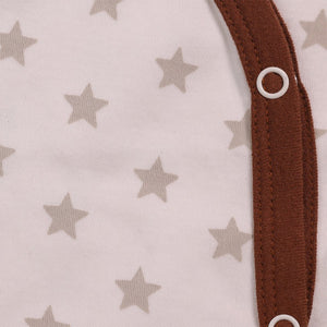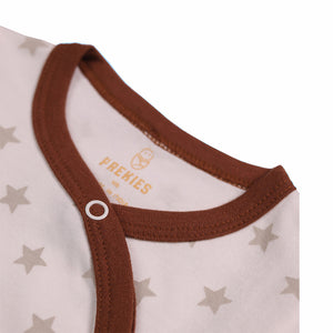 This gift set is made for Preemie and Newborn babies. It comes with a sweet “Newbie” print and soft star-themed pieces. The set includes a wrapper, T-shirt, jhabla, lounge pants, booties, mittens, a bib, wash cloths, and a tiny cap. Each item feels smooth and gentle on the baby’s skin. The cloth stays light and breathable, keeping the baby comfy through the day. Every piece fits well without pulling or rubbing, making it safe for preemie use.