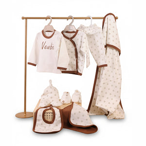 This set is a great pick for a hospital bag or a first wardrobe. The wrapper keeps the baby warm, and the clothes allow easy movement. The soft colours and simple “Newbie” print give a calm, neat look in early photos. The full set covers all the little essentials needed in the first days, making it a thoughtful gift for new parents.