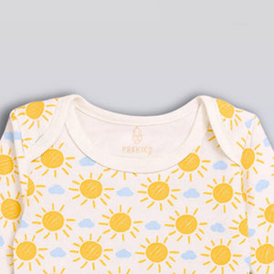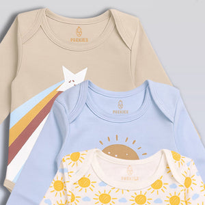This set has three soft onesies made for Preemie, Newborn, 0–1 M, and 0–3 M babies. The onesies come in light colours with sweet floral-style prints. One has tiny flowers all over. One has calm stripes. One stays simple with a soft, warm shade. The snaps open fast and make diaper changes easy. The cotton feels smooth on the skin, and the seams stay soft.