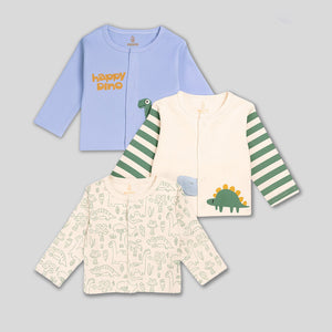 This set has three soft jhablas made for Preemie, Newborn, 0–1 M, and 0–3 M babies. The jhablas come in calm pastel shades with cute bear prints. One has small bear lines all over. One has a soft solid look. One has gentle stripes with a tiny bear on the front. The buttons open fast and make dressing easy. The cotton feels smooth on the skin, and the flat seams stay soft. The fabric stretches lightly for easy movement.