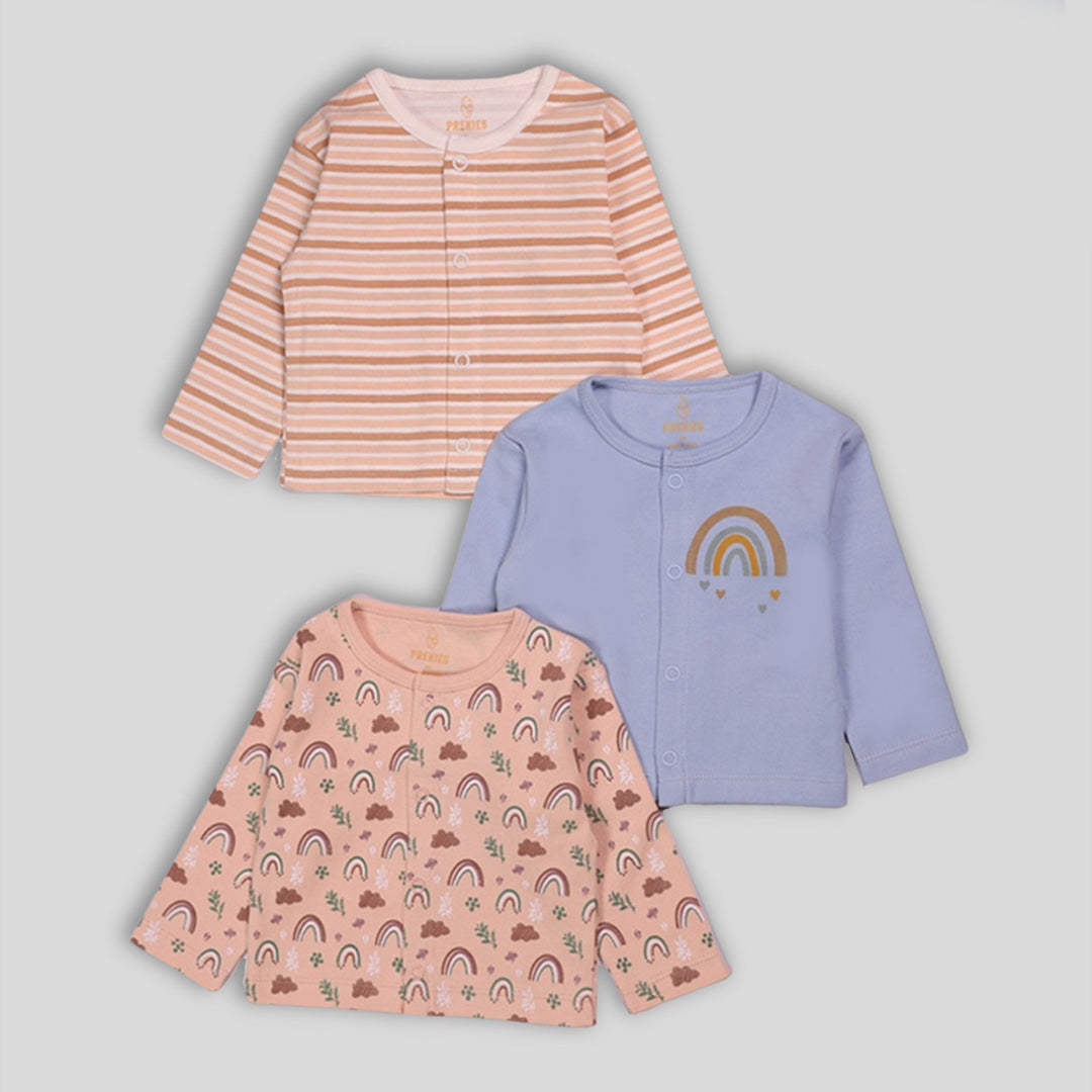 These rainbow-printed jhablas and these stripe patterns are soft, breathable, and made for layering. Ideal for hot climates or sensitive newborn skin.