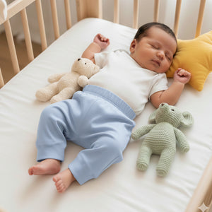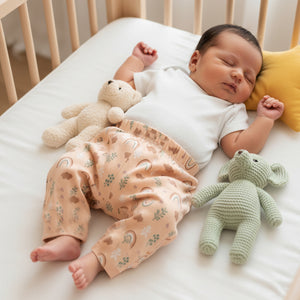 This set has three soft pyjamas made for Preemie, Newborn, 0–1 M, and 0–3 M babies. The pyjamas come in gentle shades with a sweet rainbow theme. One has tiny rainbow prints all over. One carries calm stripes. One stays plain for simple everyday use. The elastic waist sits light and does not press the tummy. The fabric lets the legs bend and stretch easily, and the seams stay flat for comfort.