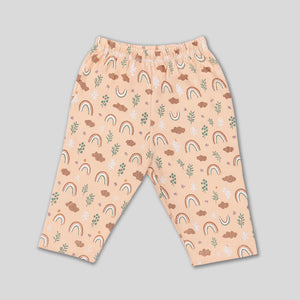 This set works well for daytime wear, naps, and small outings. The cloth feels airy and keeps the baby relaxed. It stays kind on newborn skin through the day. The fit allows free movement without any tight pull. The soft colours and rainbow look make this set nice for gifting or early photos. It pairs well with most jhablas and onesies.