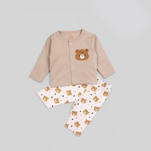 A cozy Teddy Bear Print -themed set with classic beige tones. Offers a snug and breathable layering option for your baby’s delicate skin.