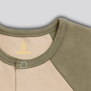 This romper is made for Preemie, Newborn, 0–1 M, and 0–3 M babies. It has a cute dino print on the front. The cotton feels soft and smooth on the skin. The fabric is light and stretchable, so the baby can move with ease. The snaps open fast and make diaper changes simple. The seams stay soft and gentle.